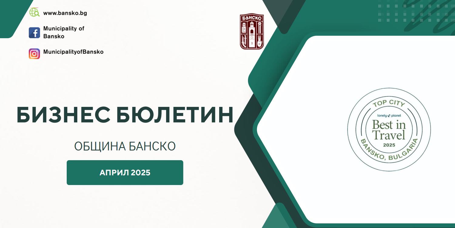Община Банско публикува априлския брой на своя електронен бизнес бюлетин, който включва актуални новини, програми и ресурси, насочени към подпомагане на местния бизнес и заетостта.