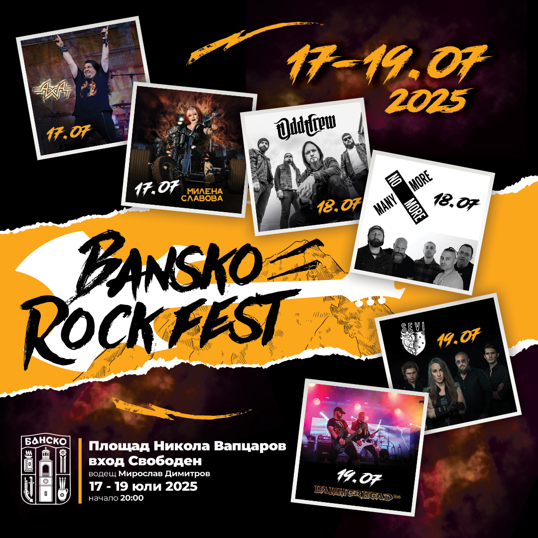 От 17 до 19 юли Банско ще се превърне в сцена на мощен рок фестивал, който ще събере едни от най-емблематичните български рок групи. В рамките на три поредни нощи, центърът на града ще се изпълни с енергия, музика и неповторима атмосфера под открито небе.